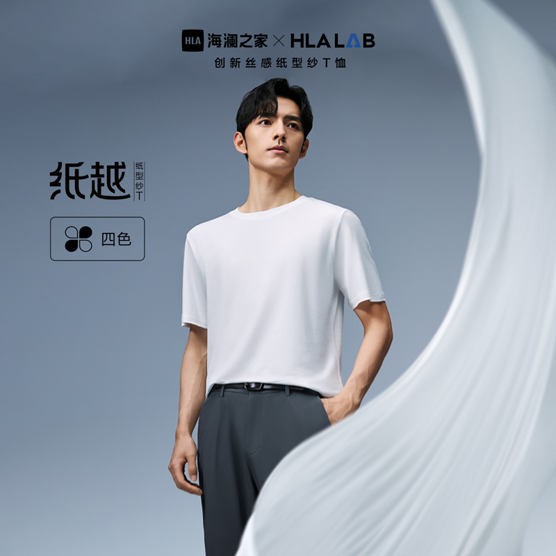 HLA海澜之家丝感纸型纱T恤2024春夏新款圆领清爽速干纯色短袖男HNTBW2W192A ¥328.00 -