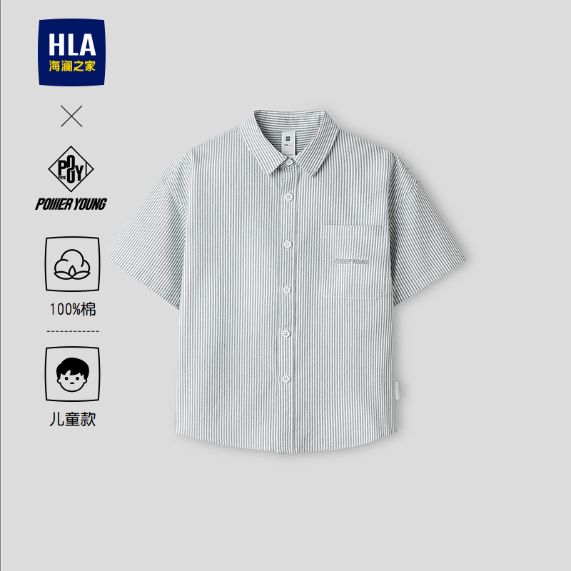 HLA海澜之家POWER YOUNG系列短袖衬衫26春夏新条纹纯棉衬衣男童HNEEW2F005A ¥109.00 -