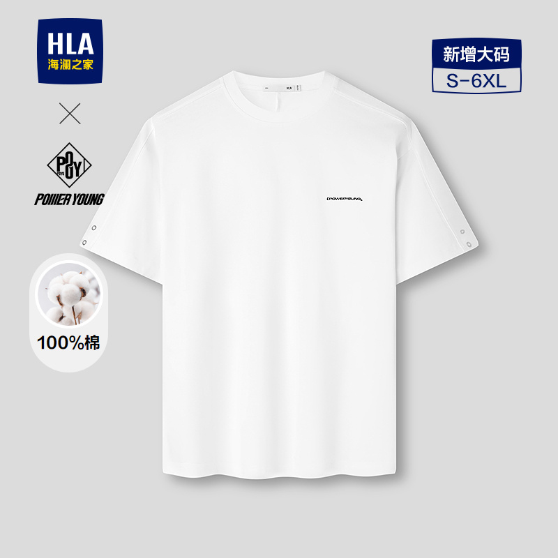 HLA海澜之家POWER YOUNG系列白T恤2026春夏新款纯棉纯色短袖男HNTBW2F318A ¥108.00 -